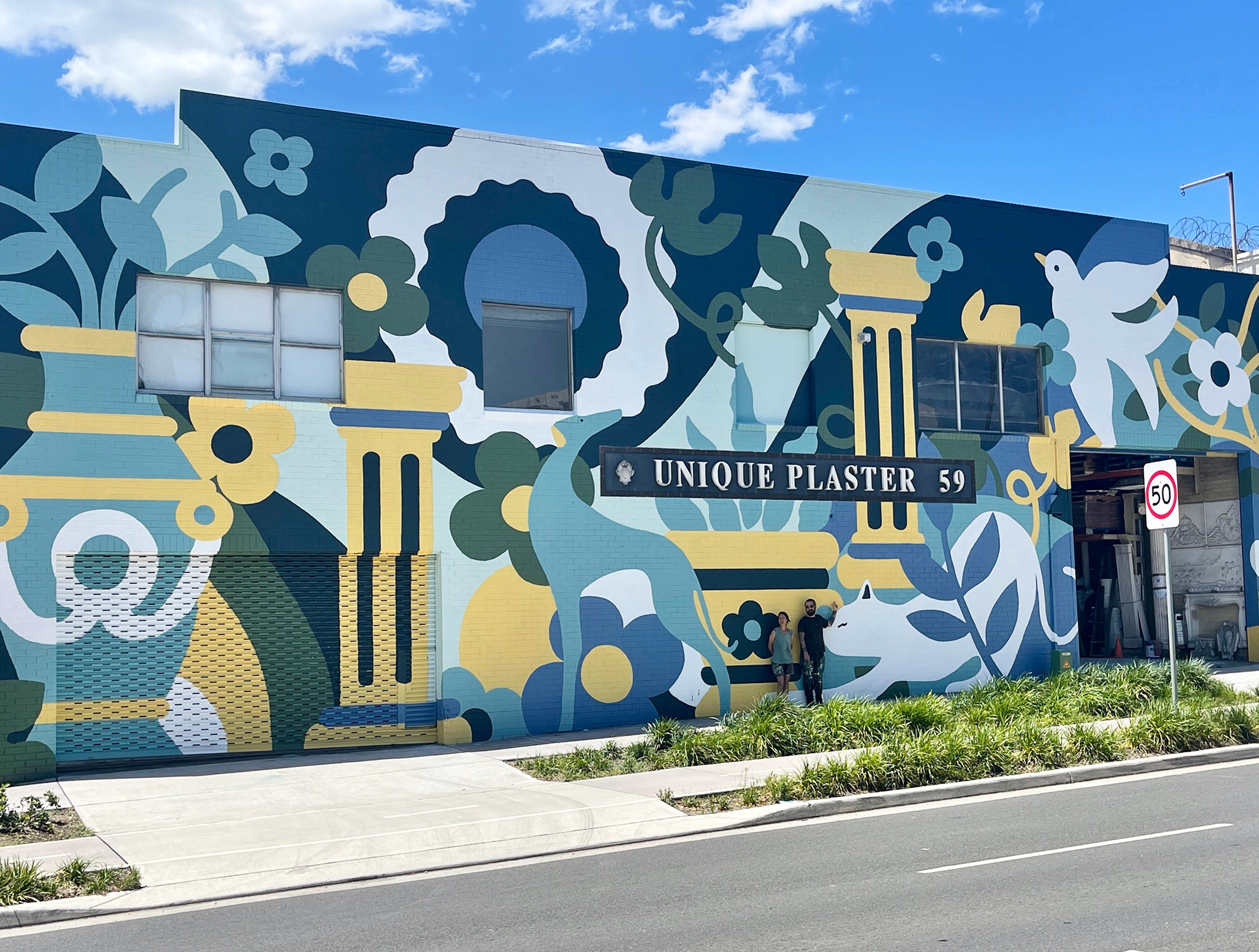 St Peters, 2021 Designed and painted with Nico Nicoson. Supported by Inner West Council and Canal To Creek Public Art Program. Photo credit to Kasane Low.