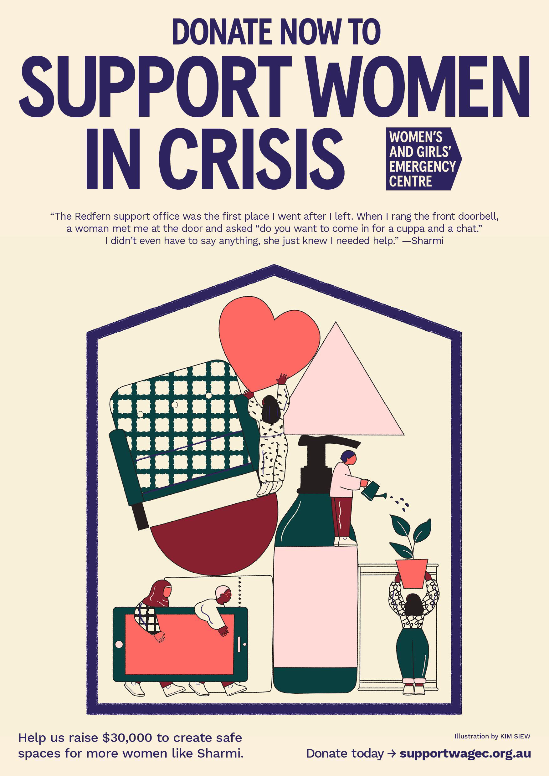 Illustration for 'Women And Girls Emergency Centre' in Redfern, who provide for women and children in crisis.